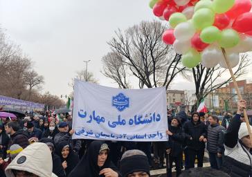 دانشگاهیان دانشگاه ملی مهارت واحد استانی آذربایجان شرقی همگام با ملت حماسه ساز ایران اسلامی و در لبیک به فراخوان مقام معظم رهبری (مدظله العالی)، با حضور پرشور و کم نظیر خود در راهپیمایی یوم الله ۲۲ بهمن در میدان نماز تبریز، بار دیگر برگ زرین دیگری بر افتخارات جامعه علمی استان افزودند